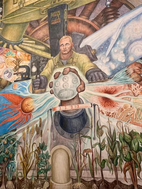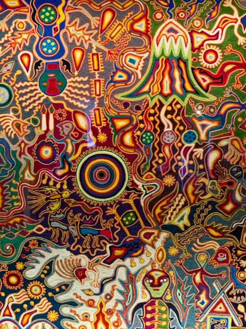 Then to the folk art museum, which had a pretty nice collection though I was starting to get tired and it was a lot to get through. Then through the central plaza to the very weird palacio de bellas artes I think it was, cool murals inside but so dark and unwelcoming generally; thought about seeing the ballet folklorico (already missed the morning show) but tired and didn't want to stay late, so back home and then I went back out and got pizza from Nosferatu which took a long time but I chatted with an American living for a few months in cdmx and then picked up paletas and got back with the pizza and it was excellent. Long couple days!