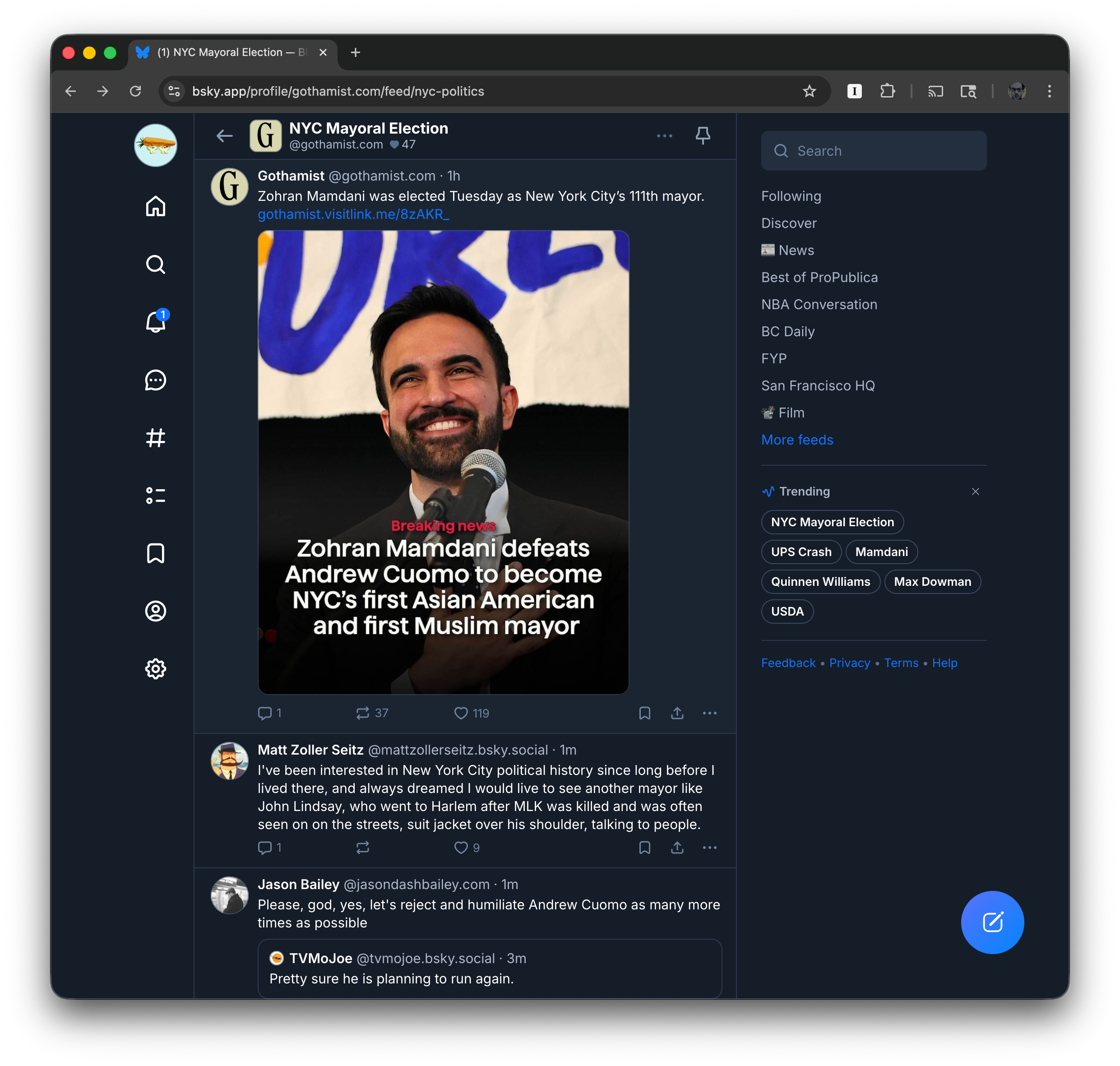 We tested our theory on Tuesday night by partnering with WNYC, Gothamist, and Bluesky to provide a trending topic covering the NYC mayoral election results. What we proved wasn't just that our technology works—it was that when you remove platform lock-in, institutions with actual expertise can build experiences that serve audiences what they actually want.