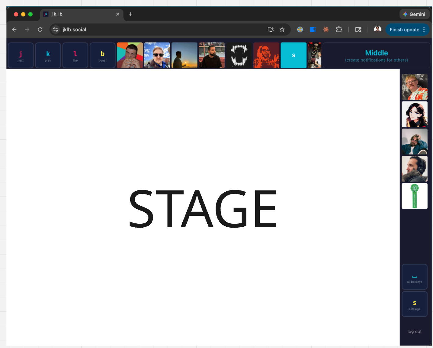 On jklb.social, the profile pictures of the last dozen or so people to interact with you are displayed along the top and left-hand banners of the screen.