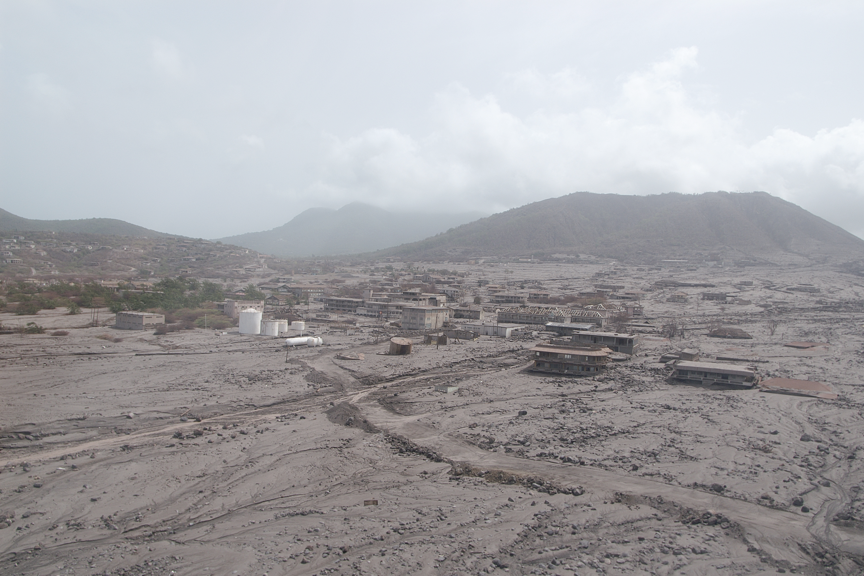 "Constructed on historical lava deposits near the then long-inactive Soufrière Hills volcano, the town was evacuated in 1995 when the volcano resumed erupting. Plymouth was eventually abandoned permanently in 1997 after it was substantially burnt and mostly buried by a series of pyroclastic flows and lahars. For centuries, it had been the only port of entry to the island. Plymouth is still the de jure capital of Montserrat, making it the only ghost town that is the capital of a political territory."