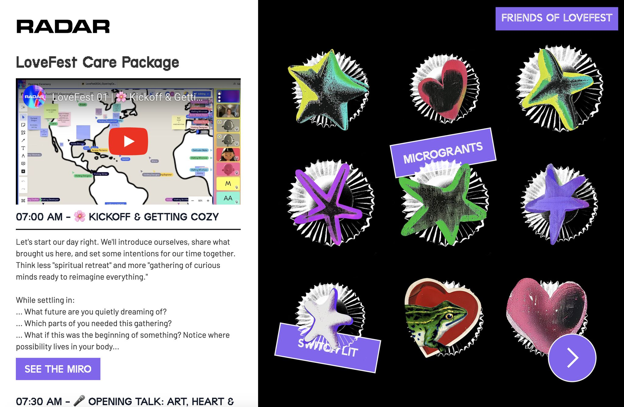 The energy of LoveFest continues to warm our hearts - from vulnerable conversations about reimagining care, to collective dreaming about systems built on love, to unexpected connections forged in breakout rooms. Whether you joined us live or are just beginning your journey into these possibilities, we've packed up a care package filled with sweet treats for you to savor.