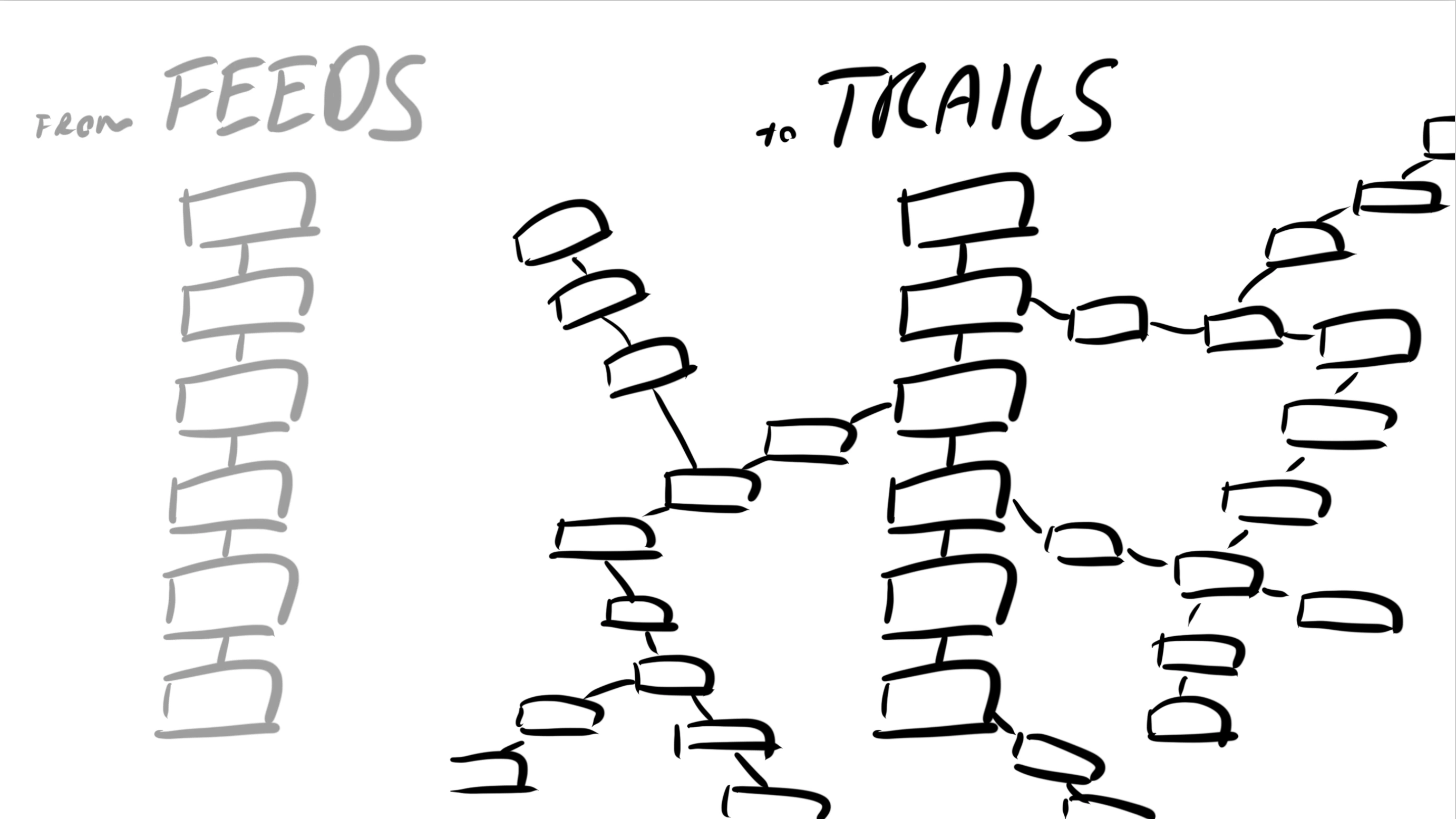 Applied to social media, this vision suggests that rather than give the user only a feed (a single path through the world of information), we should give the user access to a whole network of trails (interconnected paths through the world of information).