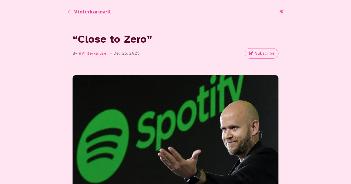 On May 29, 2024, Spotify CEO Daniel Ek tweeted something that sent shockwaves through the music community: “Today, with the cost of creating content being close to zero, people can share an incredible amount of content”. He later attempted to walk back the statement, calling his definition of “content” (yes, he called music “content”) “clumsy” and “very reductive”. But the damage was done, revealing just how disconnected the billionaire architect of modern music streaming is from the actual econ...