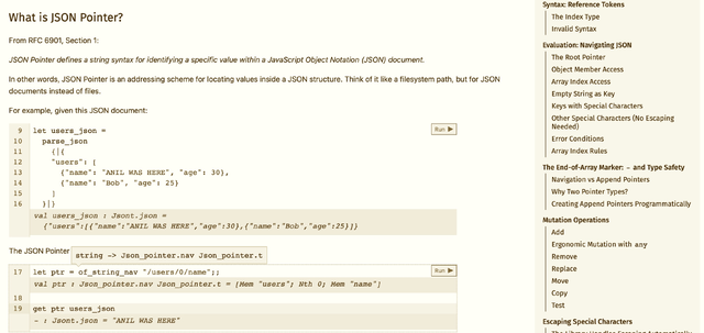 Building interactive OCaml tutorials that compile to JavaScript, using agents to generate executable documentation that teaches protocols like JSON Pointer while you code review.
