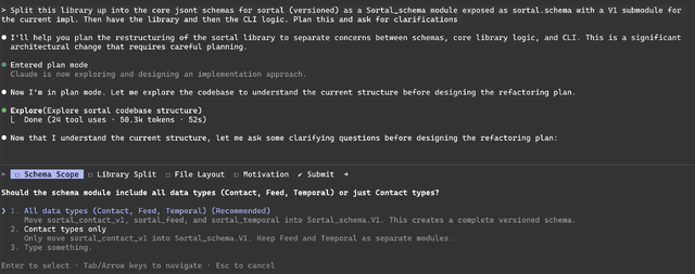 Building a simpler single-process terminal UI for Sortal using Mosaic's effects-based direct-style API, with Eio integration and discovering multimodal image debugging for terminal layouts.