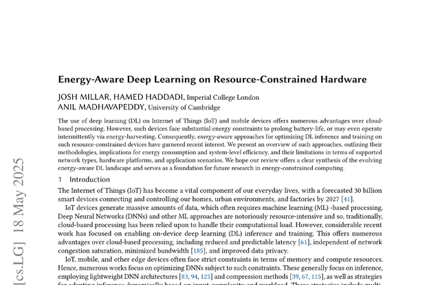 Survey paper on energy-aware approaches for optimizing deep learning training and inference on embedded devices.