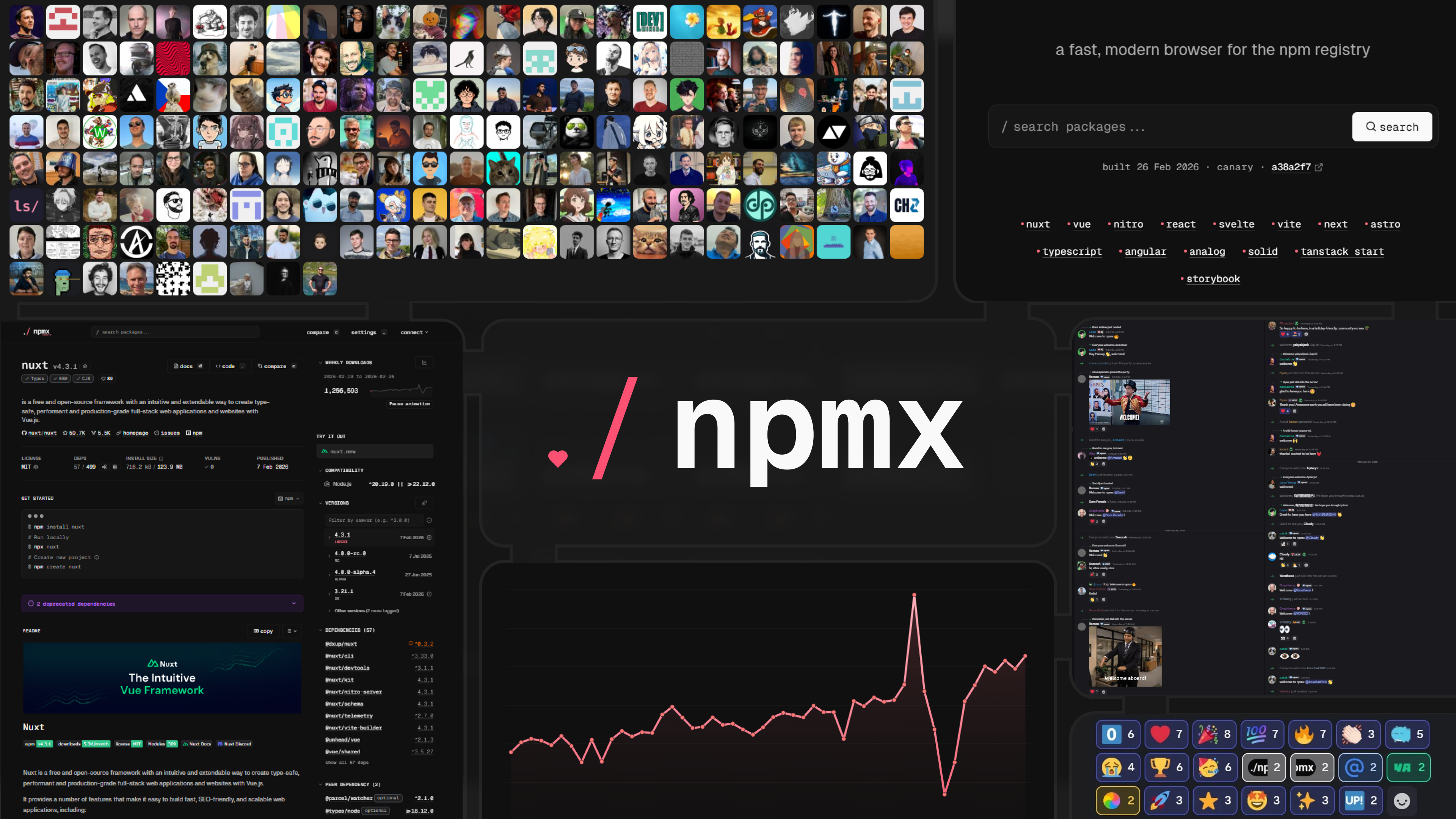 npmx - a fast, modern browser for the npm registry. You've definitely heard about this project, and it’s probably got you just as excited as it has me. We've had a month of exciting and invaluable experience, and we've got some crazy plans ahead. I'm Alex, a project maintainer and one of the many who have been lucky enough to witness the formation of npmx from the front lines. This is an article reflecting on the project, warm stories, wonderful people, and, of course, a look into the future. I hope I can convey this marvelous experience and give you the opportunity to feel it with me.