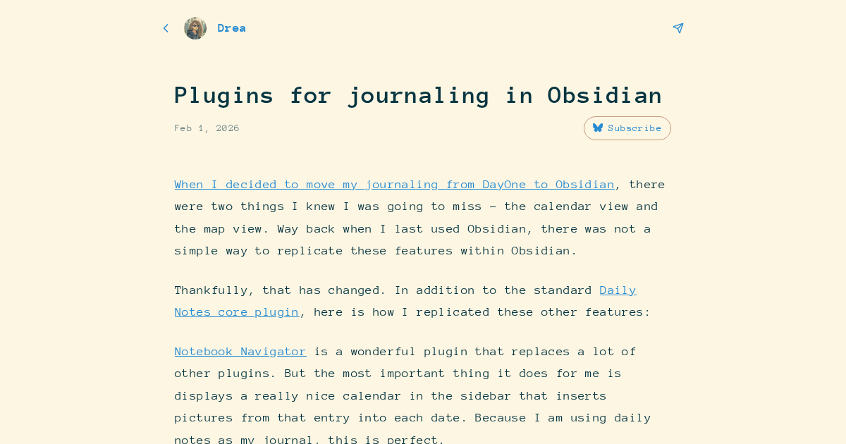 When I decided to move my journaling from DayOne to Obsidian, there were two things I knew I was going to miss - the calendar view and the map view. Way back when I last used Obsidian, there was not a simple way to replicate these features within Obsidian. Thankfully, that has changed. In addition to the standard Daily Notes core plugin, here is how I replicated these other features: Notebook Navigator is a wonderful plugin that replaces a lot of other plugins. But the most important thing it do...